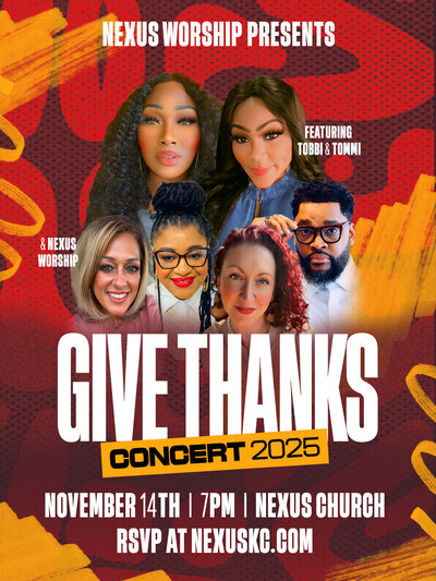 Come join us for our Nexus Worship "Give Thanks" Concert! Let's all come together to praise & thank The Lord for all He has done for us! Our Nexus Worship team is going to bless you as they lead us into a powerful night of worship & Pastor Jon has a MIGHTY Word to share with you! It's going to be an unforgettable night that you don't want to miss! There is NO charge to attend! Invite everyone you know to join you!